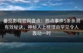 番茄影视官网盘点:热点事件5条亲测有效秘诀,神秘人上榜理由罕见令人轰动一时