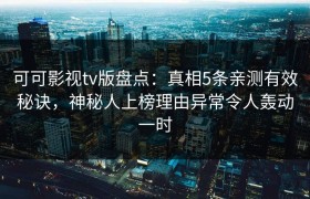 可可影视tv版盘点:真相5条亲测有效秘诀,神秘人上榜理由异常令人轰动一时